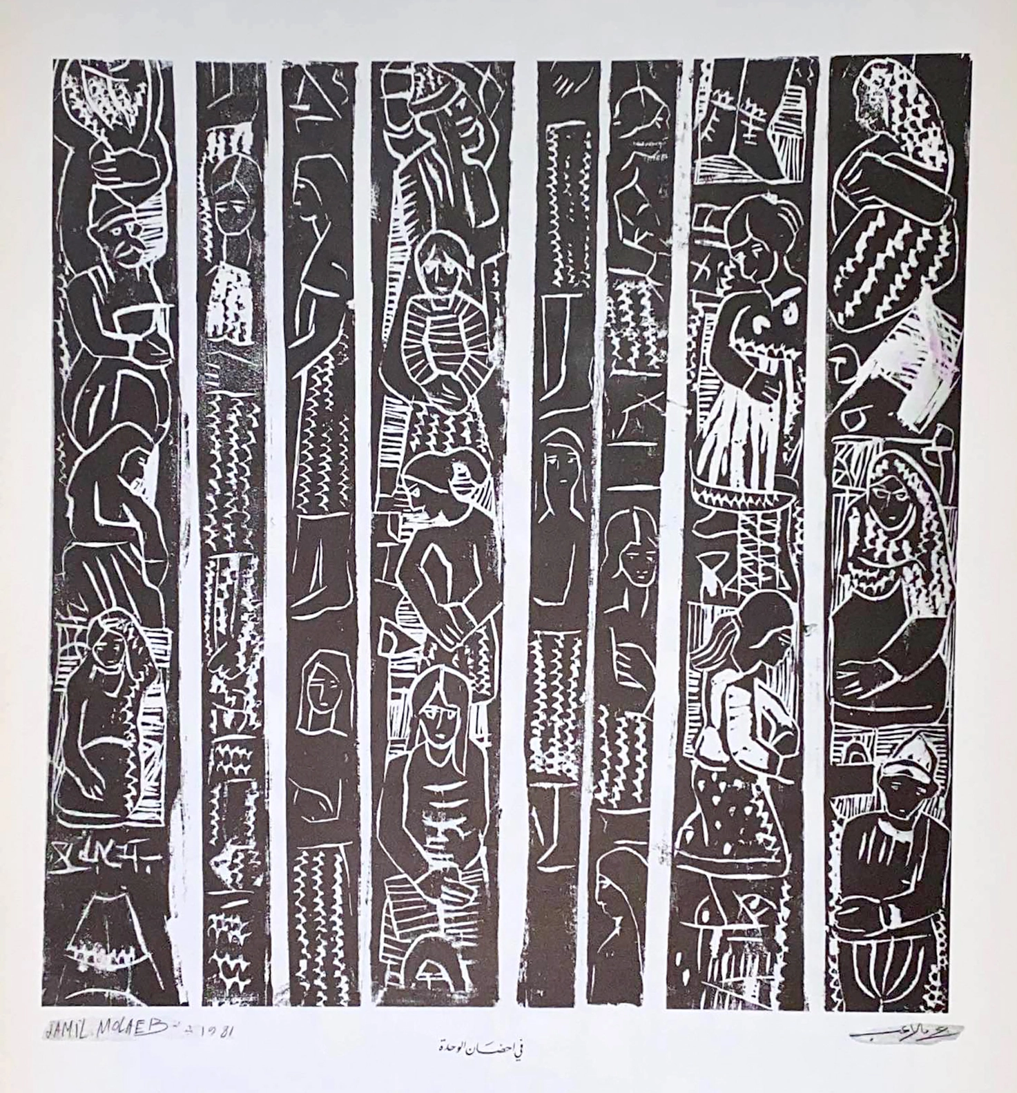 ![Molaeb, Jamil. <i>Fi-ahdan al-wahda</i> [In the arms of loneliness]. 1981. Woodcut print. 76 × 56 cm. From the series <i>Akhir al-zalam, awwal al-fajr</i>, published in 1982. Saradar Collection, Beirut. Courtesy of the artist.](https://bop.unibe.ch/manazir/article/download/11663/version/11963/15961/61810/m8oljk9j471.webp)
