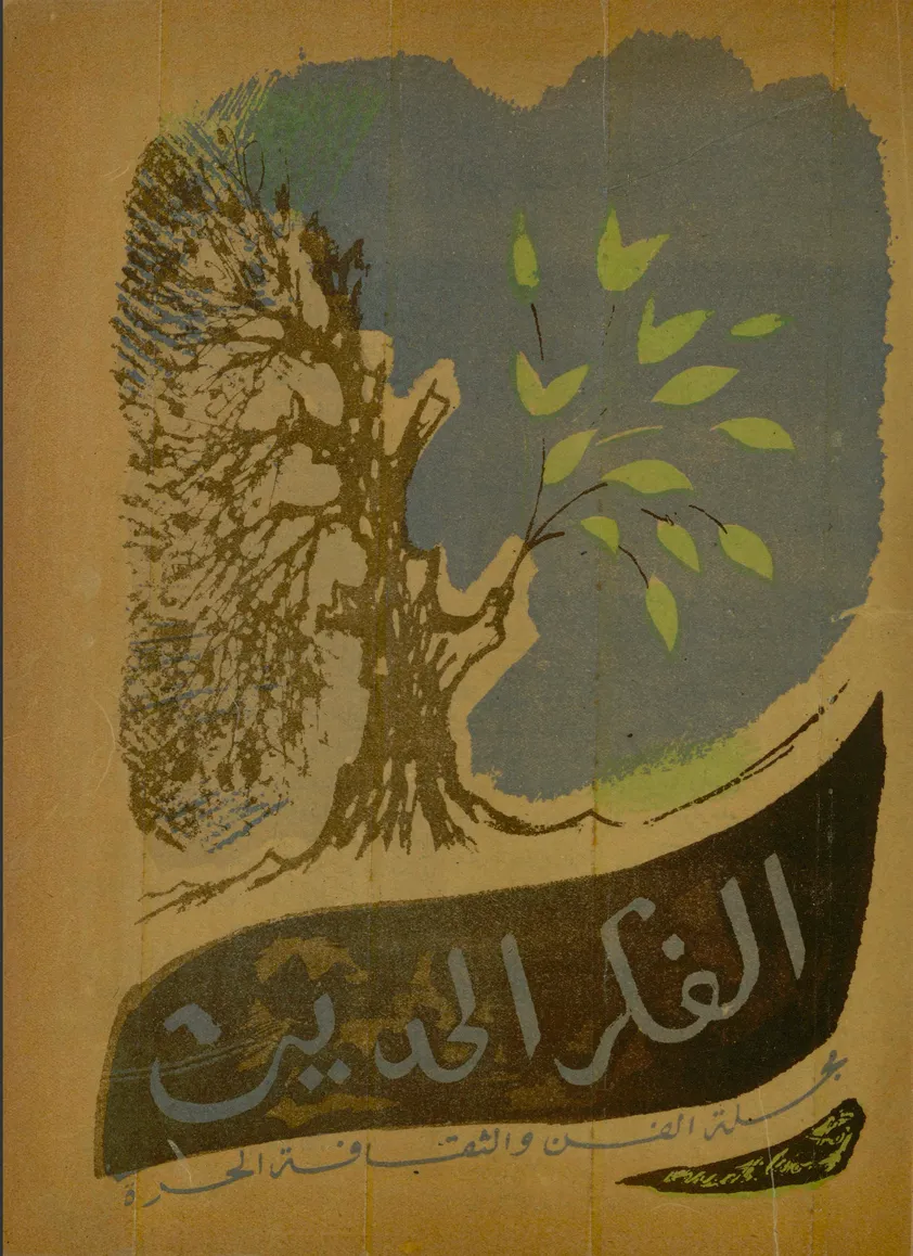La force d’al-Fikr al-Hadith réside dans sa capacité à rassembler des voix diverses autour d’un projet commun de modernité artistique. Son réseau de contributeurs illustre cette ambition. On y trouve des figures majeures de la scène irakienne, comme les poètes Muhammad Mahdi al-Jawahiri (1889–1997) et Rashid al-Nasiri (1920–1962), ainsi que l’écrivain égyptien Ismail Ahmad Adham (1911–1940) et l’artiste libanais Moustafa Farroukh (1901–1957). Le poète libanais Yusuf al-Khal (1917–1987), le journaliste polonais Ryszard Kapuściński (1932–2007), le peintre britannique Kenneth Wood (1912–2008), l’archéologue Seton Lloyd (1903–1985)49 et le poète Simon Watson Taylor (1923–2005) apportent également leurs contributions. Ces échanges stimulent la réflexion sur des mouvements tels que le surréalisme50, que Hamoudi promeut en lien avec des correspondances internationales et des analyses d’événements artistiques majeurs51.