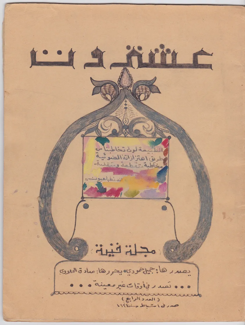 La création de ʿAshtarut en 1942 marque une étape décisive dans la construction d’un espace de dialogue transculturel. Bien qu’écrite à la main et diffusée de manière confidentielle, la revue devient un véritable laboratoire d’idées, où s’élabore un nouveau vocabulaire artistique moderne. Cette initiative répond à un besoin crucial : de nombreux concepts de l’art moderne n’ayant pas d’équivalents en arabe, leur absence freine la compréhension et l’appropriation des courants contemporains.