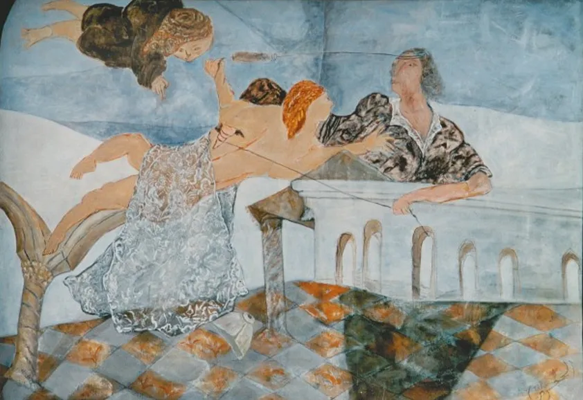 Le rêve apparaît comme le fil d’Ariane de ces œuvres aux multiples interprétations créées comme résistance au réel. Cet univers est animé d’êtres en lévitation, en apesanteur, qui flottent entre ciel et terre, telles des réminiscences de sensations vécues dans les songes. Survolant le monde terrestre et ses épreuves, les personnages semblent ballottés par l’instabilité de leur existence, qui gagne aussi leur environnement. Si ces figures mouvantes évoquent l’ascension ou la chute, elles symbolisent surtout un monde purement imaginaire. Formant des sortes de ballets chorégraphiés qui se déroulent dans un espace-temps indéfini, elles ouvrent une dimension où tout peut se jouer, se déjouer et se rejouer.