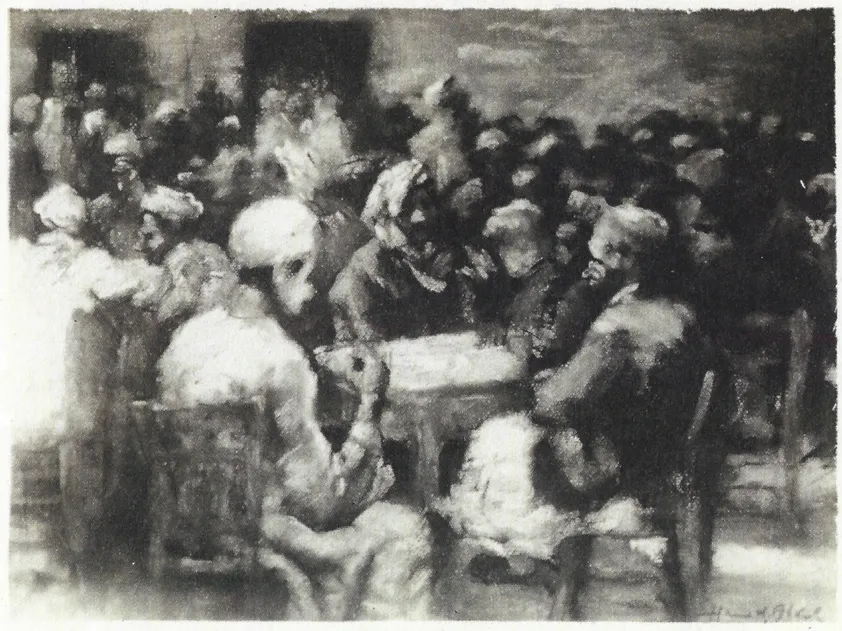 Tout au long de sa vie, Hamed Abdalla a effectué plusieurs déplacements à Paris. Il est né en 1917, et son activité artistique commence en Égypte, bien avant son arrivée en France. Il émerge artistiquement dès les années 1930, lorsqu’il fréquente le café populaire de Manial et qu’il portraiture les gens du quartier. Il y a d’ailleurs beaucoup de tableaux de la période dite du « café de Manial » (fig. 1). Pas loin de la place Tahrir, il y a un secteur qu’on appelle le quartier Ismaélien (Ismailieh) dans lequel se trouvent plusieurs cafés fréquentés par les artistes et les intellectuels. Abdalla s’installe face au Musée égyptien de la place Tahrir, rue Damiette, avec Tahia Halim sa première femme et leur appartement devient un atelier très fréquenté par les élèves du peintre qui a gagné une reputation internationale à son retour de Paris en 1951. Il fréquente les cafés de wast al balad (le centre dit ismaélien du Caire au début des années 1950). Le talent et le charisme d’Abdalla, qui est issu d’une famille populaire, attire le milieu cosmopolite au fameux café de Manial pour aller à la rencontre des artistes égyptiens. Manial, c’est comme si on parlait des faubourgs de Nanterre dans les années 1960 ! Dans ce contexte, Abdalla rencontre la communauté des « Égyptiotes », c’est-à-dire des étrangers nés ou ayant grandi en Égypte, où ils ont développé leur carrière et qui, de ce fait, sont presque considérés comme des Égyptiens.
