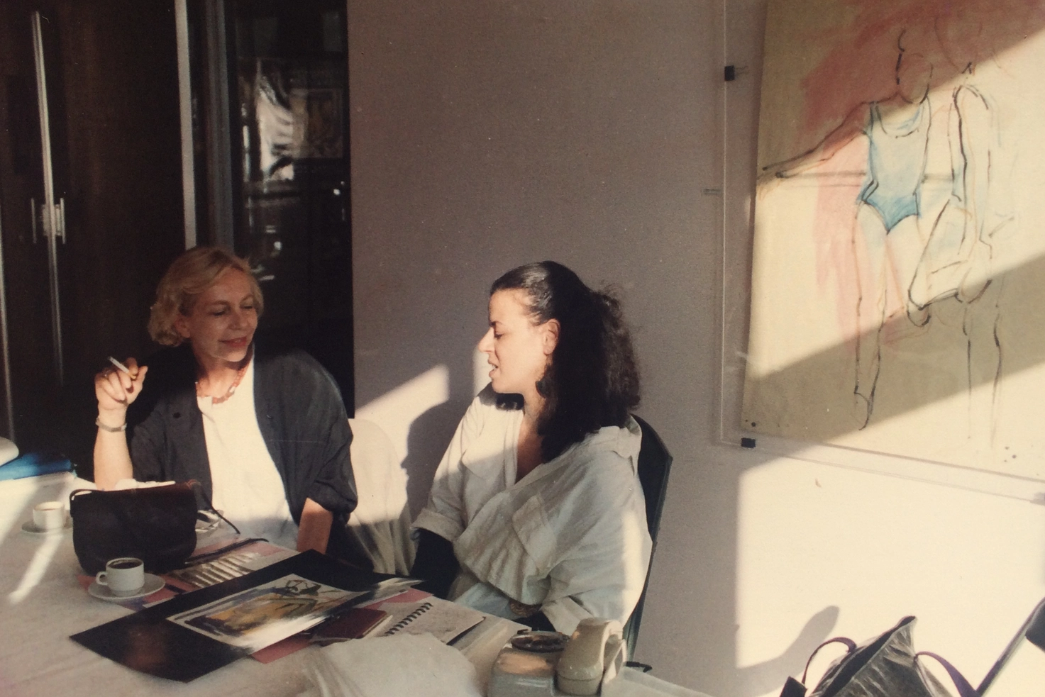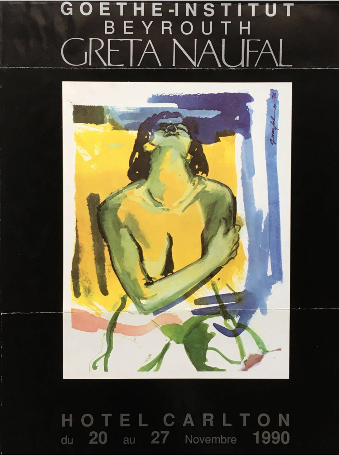 In 1982, we had a shortage of water and electricity. It was a time of war; there were bombshells on a daily basis. I had my first child that year and I needed a safe place to work. Barbara suggested to me to transform one of the rooms into an atelier for painting. Two artists had already worked there; a Palestinian and a Lebanese. The first was Nasser Soumi and the second was Paul Wakim. There was a printing machine and a large water tank where I could wash my painting material. It was an informal space, open and full of light. I found it conducive to work there. I could go down to the library as well as communicate with the various visitors and students of the German cultural centre. Sometimes they screened films. The institute was active during those days. It was a dynamic and vibrant place.